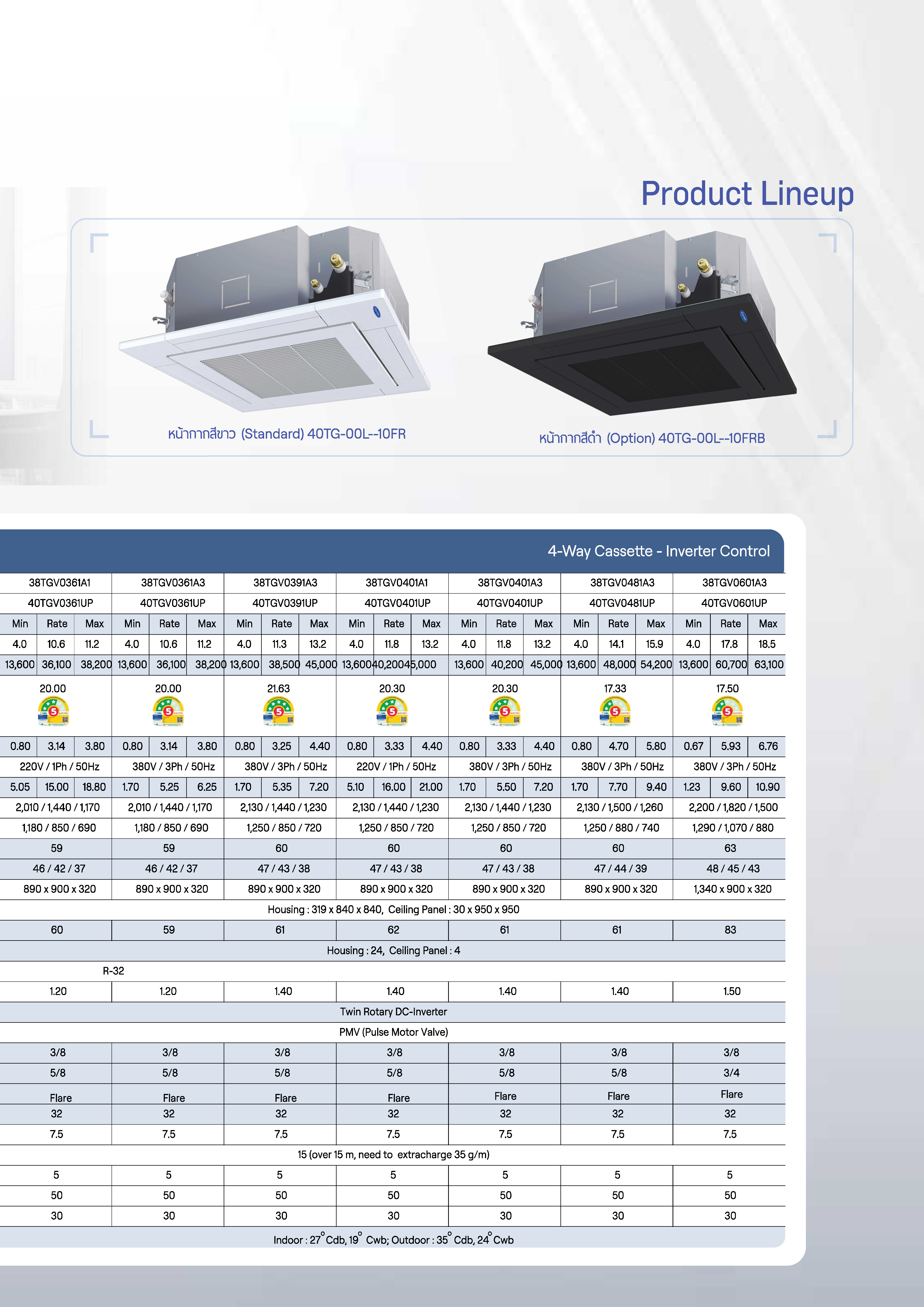 | 38TGV0361A1 / 40TGV0361UP | 36,100 | 20.00 | 220V / 1Ph / 50Hz |
